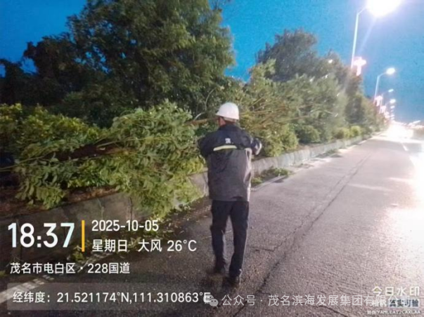與此同時,養(yǎng)護中心搶險隊優(yōu)化力量配置,采取“兵分兩路”工作模式,對茂名港大道、S291省道、轄區(qū)國道及X848縣道等展開全域巡查,及時發(fā)現(xiàn)并疏通積水點,協(xié)同清理國道沿線倒伏樹木,快速消除多處道路安全隱患,保障了道路基礎(chǔ)通行條件。